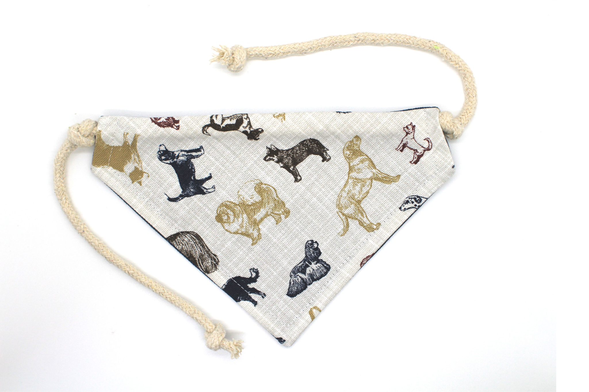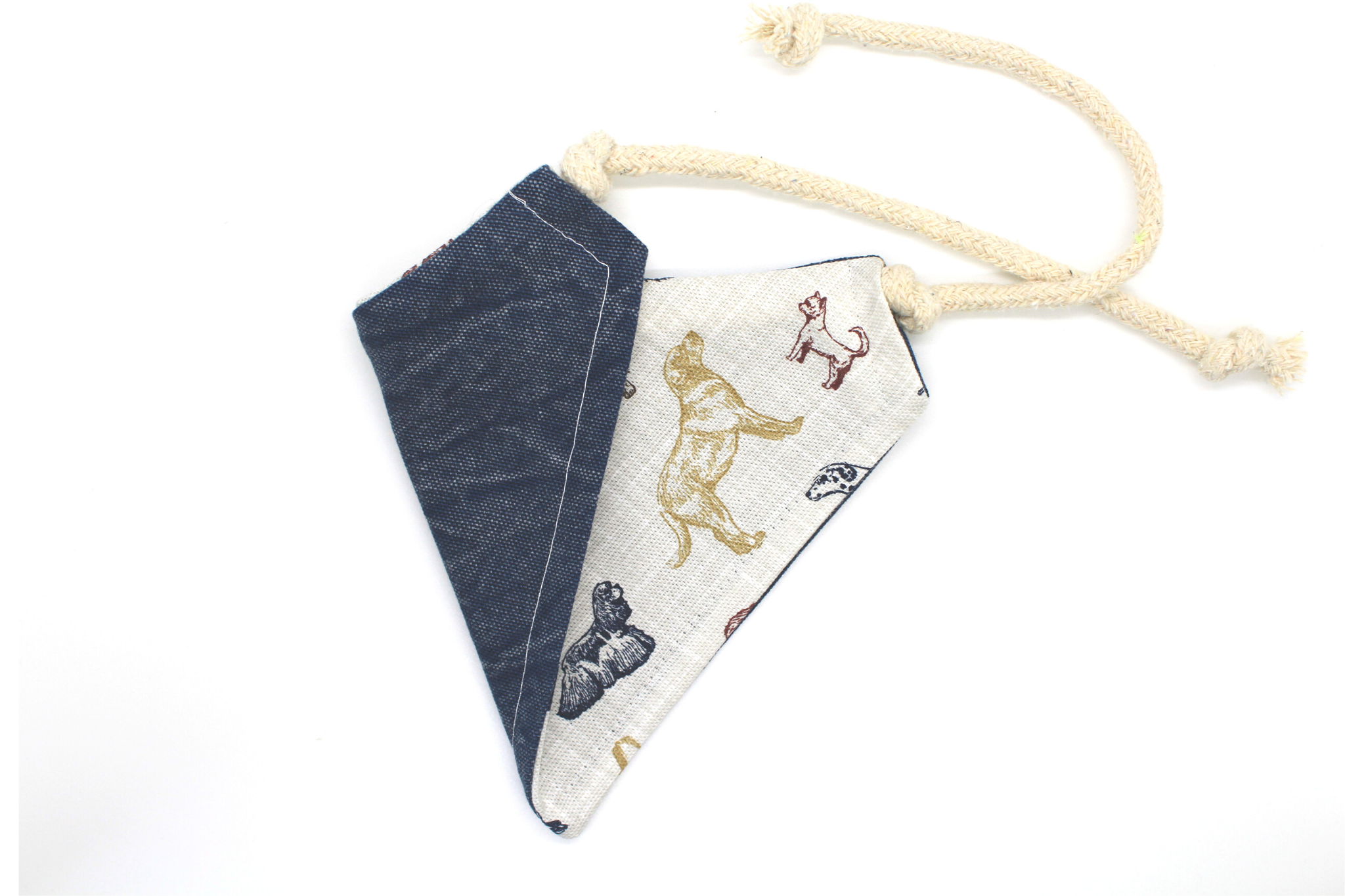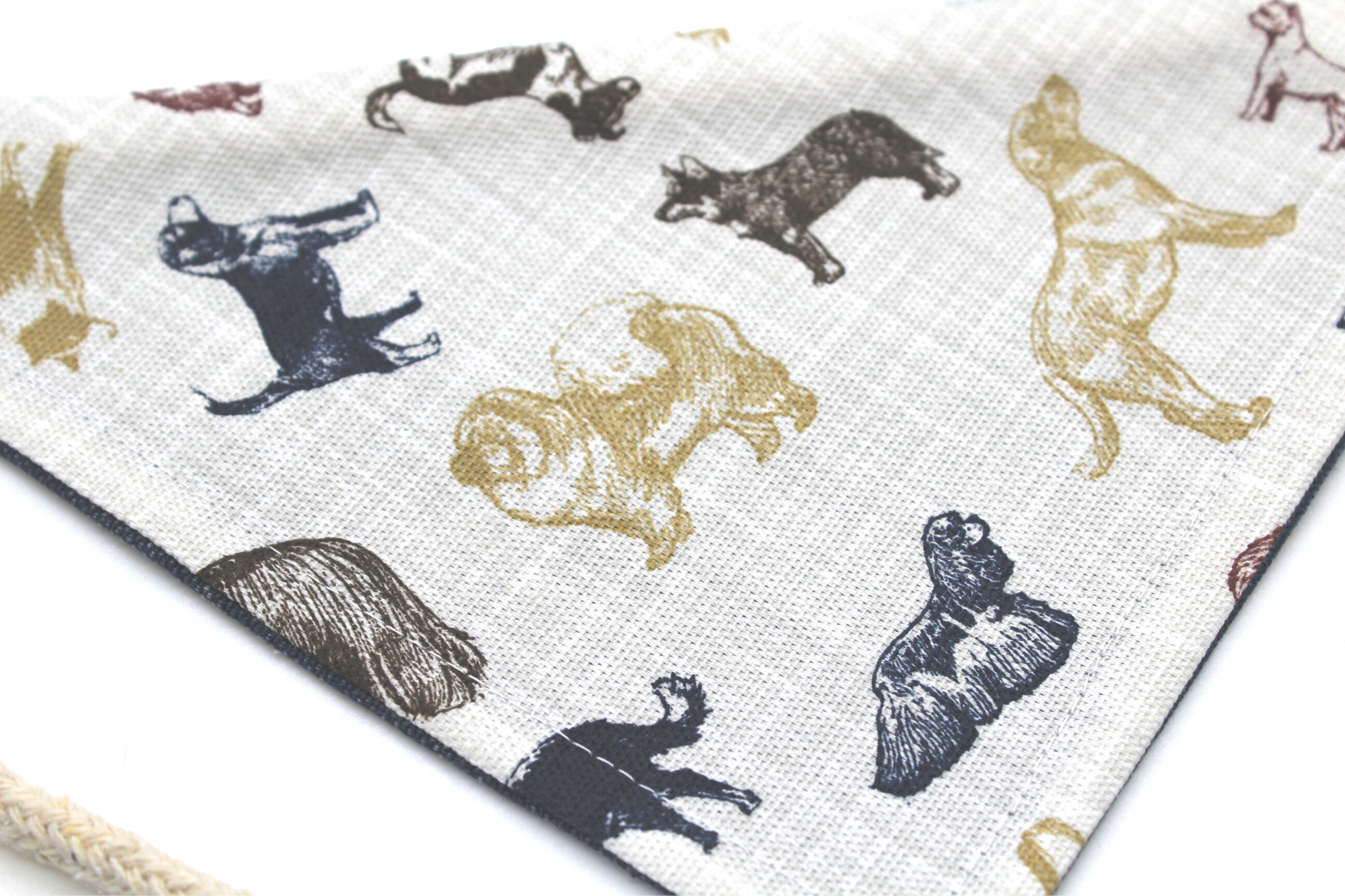 Multi-colored various dog breeds fabric reverses to a soft denim fabric. Please see additional photos for sizing guidelines and other important information.