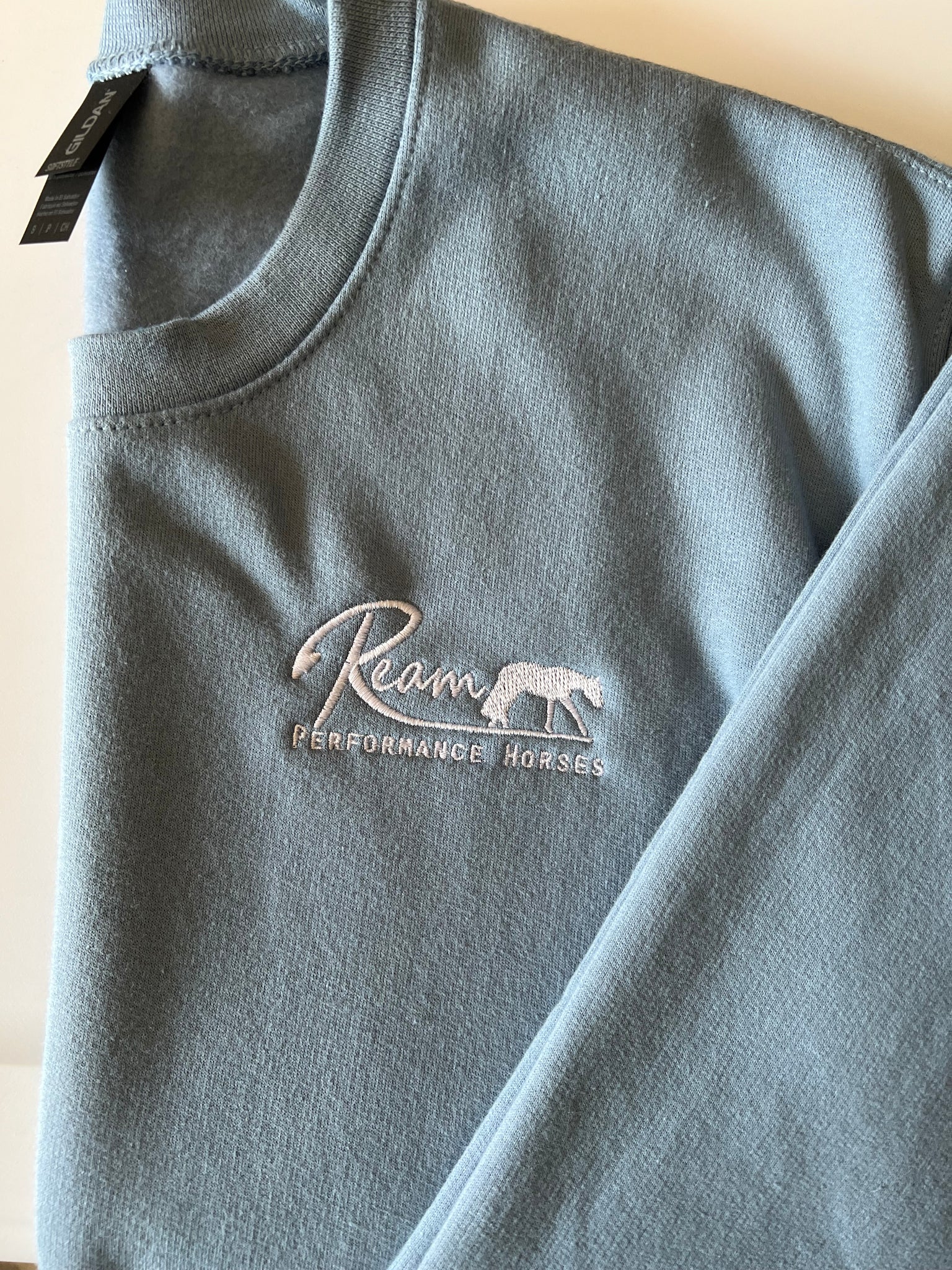 Ream Performance Horses logo embroidered on a unisex-fit Gildan SoftStyle crew neck sweatshirt.